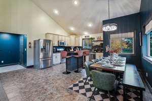 ➤ 65" Smart TV, Pool table, Shuffleboard, Record Player, Mini Refrigerator, Bar table & Bar cat